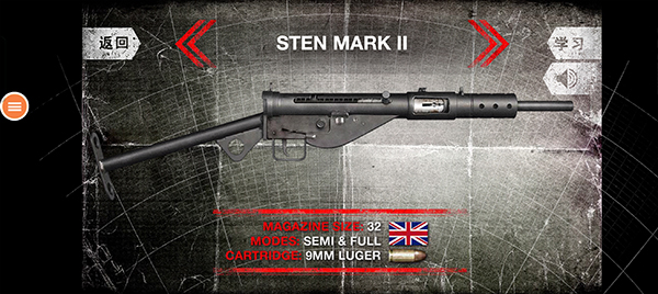 2、都调好了之后,退出来点“选择武器”进枪库。左右滑动可以切换不同的枪,挑一把顺眼的,然后点右边的“学习”,系统会教你怎么摆弄这把枪。