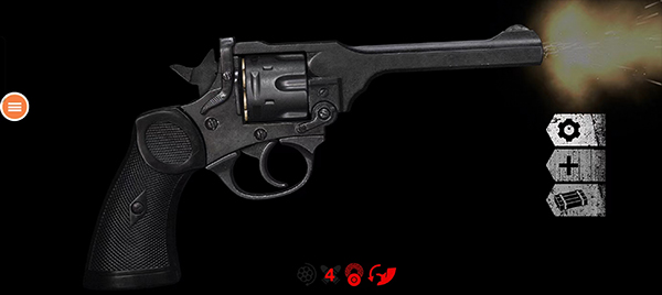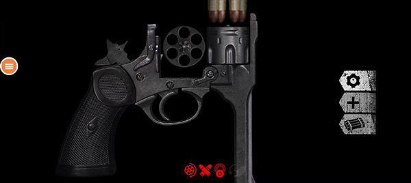 4、左轮手枪:能玩的部分包括扳机、击锤、转轮闩、快速装弹器、还有可以旋转的弹巢。