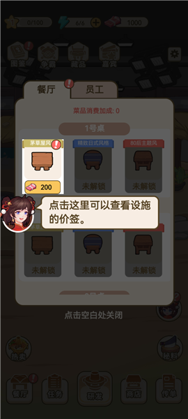 1、游戏一开始,别急着开张,先规划一下餐厅的布局吧。点击餐厅建筑就能开始动手啦。