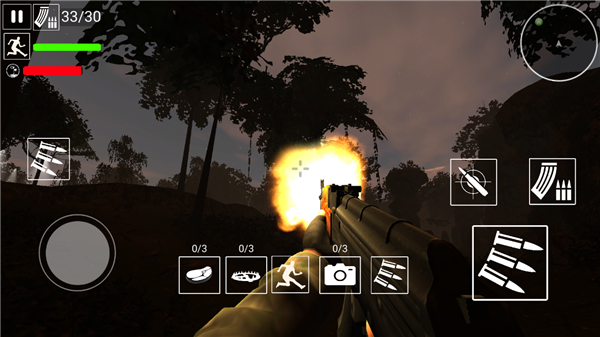2、左手边的虚拟摇杆是管你走路的,右手边那几个键就是控制视角、开火之类的。老玩家应该都知道这套操作逻辑。