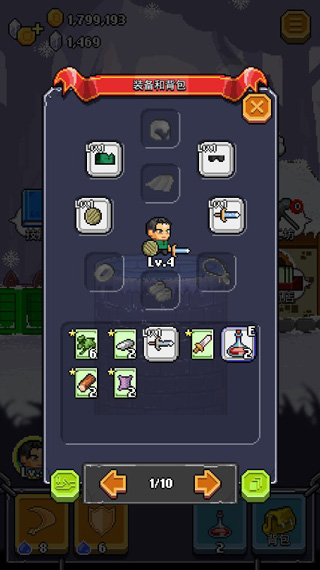 点右下角的“背包”,能看到角色的全身家当。上面一排是装备栏,武器、衣服、项链、戒指,该有的一样不少,挺全乎。刷到新装备,直接在背包里点一下就换上了,攻击力蹭蹭涨。可别学我,刚上手连个项链都还没打到。下面一格格的就是你打怪掉的各种材料,可以用来升级装备,用不上的破烂也能直接卖了换金币。