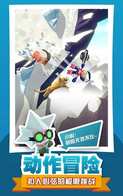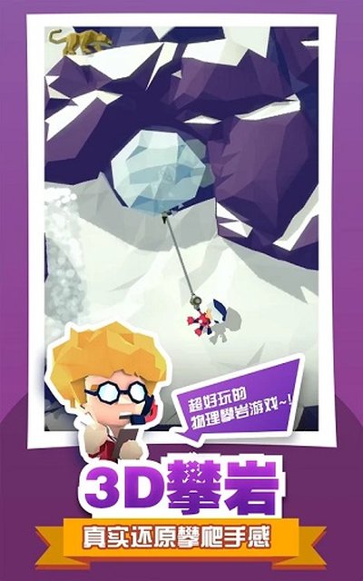 看到这个九游版的《绝地大冒险》,下来试了下。讲白了就是个3D极限攀爬游戏,目标是救那些被困在悬崖上的人和物资。你就靠一把钩子,在各种山头荡来荡去搞救援。画面风格还行,挺清新的,玩起来也简单。