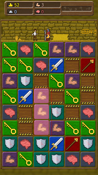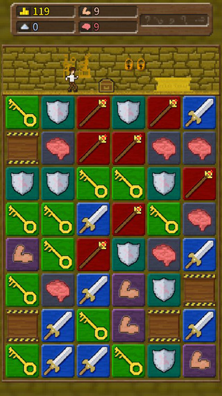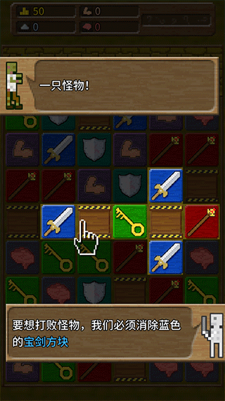 2、看到前面有怪没?想揍它就得消除屏幕下面的蓝色剑形方块。