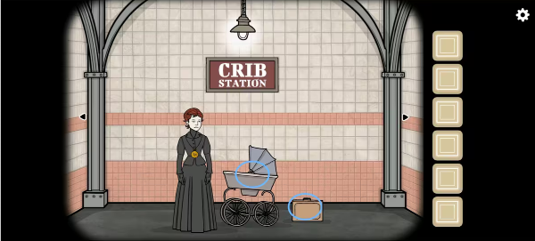 1、出地铁拿走婴儿车里的「别针」以及行李箱里的「火柴」和「奶瓶」,再在站台右侧拿走箱子里的「布」和「锉刀」。
