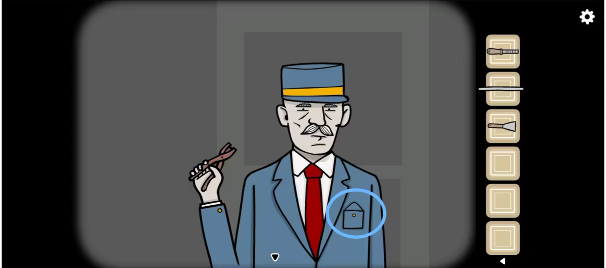 4、根据符号打开怀表获得时间「10:15」,再转身调整站台的时钟,新的火车出现后先拿走检票员胸口的「硬币」,再回来用钥匙打开售票站,接着用铁杆戳醒售票员将硬币交给她换取「车票」,最后上车检票进入下一站。注:检票时先打开检票器,再滑动车票。