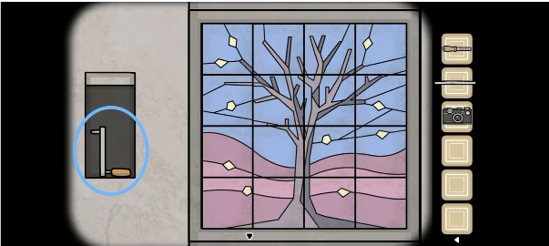 2、和劳拉玩完捉迷藏拿走手里的「玻璃板」,再点击左侧的海报,根据从小到大的提示依次点击画报场景里的物品(如上图)获得「钥匙」。