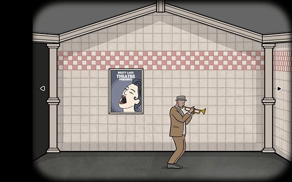 4、用手摇柄打开报亭拿到「报纸」,并用其交换到旅人胸口口袋里的「硬币」,接着回来用钥匙打开电话亭,投入硬币输入24355接听电话获得7点离开车站的提示。