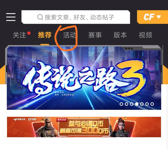 1. 打开App,主界面上方就能看到“活动”选项,戳它,进入活动中心。