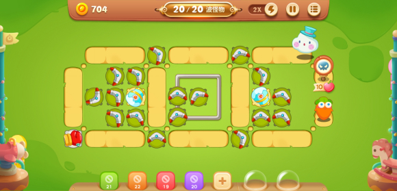 这一关能用的炮塔就四种:飞镖、拳套、毒气瓶、便便。主力输出还得是飞镖。