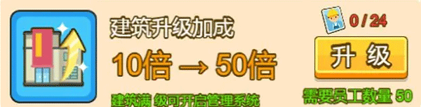 建筑升级:透过商战、商店获取“升级卡”,实现产出的倍数级增长。