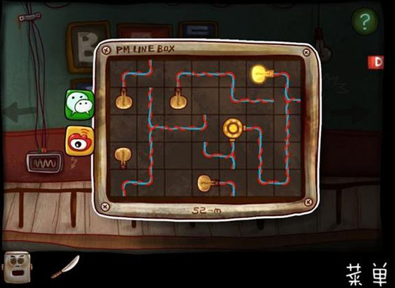 4. 从阁楼下来回到卧室,往右走,一片漆黑,得想办法开灯。新手教程里教过,有些灯得自己连电线。这里就是个接电线的小游戏,不难,纯粹是开胃菜,我就不多废话了。