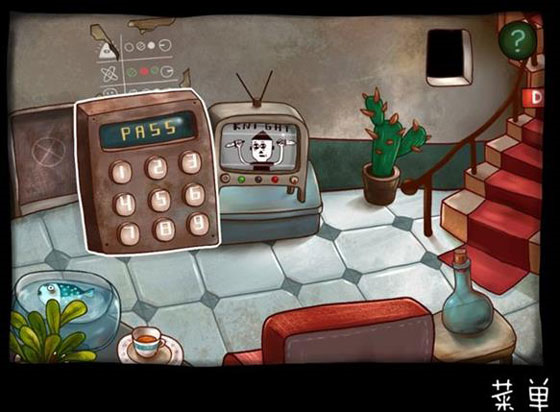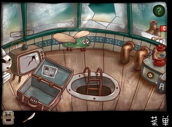 3. 顺着梯子爬到阁楼,把地上那把小刀捡起来。然后点左边的密码箱,输入刚破译的密码2015,箱子打开能拿到一个面具和一张笔记碎片。(忘了说,刚醒来的地方,地板上也有张碎片,别漏了。)点一下那个飞来飞去的虫子,会给你看一个水果图案,先记下。
