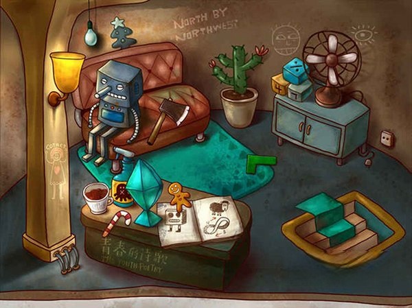 1. 开场是一段风格很独特的剪纸动画,然后主角南瓜先生就在自己家里醒了。得,经典失忆流开局,咱们得帮他找回记忆,然后离开这个家。