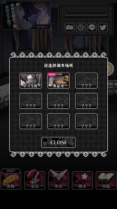 点下面第四个“调查”按钮,可以查看病房外其他地方的资料,也能找到拯救女友的关键线索。讲真,前期这个功能基本是摆设,因为外面丧尸太多你过不去,必须先把僵尸清得差不多了才能用,稍微有点蛋疼。