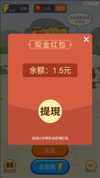 3、每过一关都会跳个红包出来,算是给你的小奖励吧,虽然不多但也是个念想。