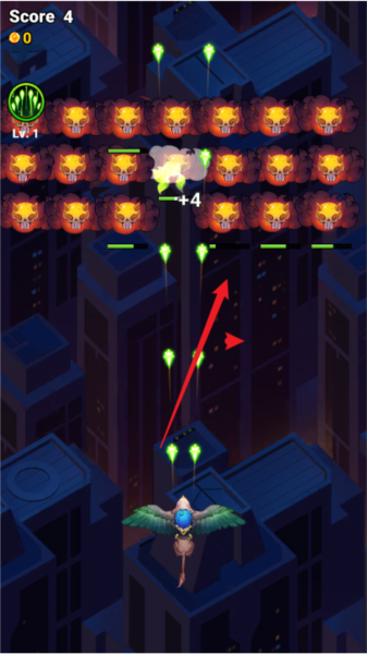2、接着就是实战了,手指在屏幕上划拉,控制你的龙移动和开火。