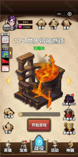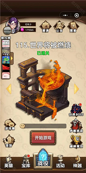 刚进游戏可能会有点懵,主界面按钮挺多的。英雄、宝库、战役、神器这几个是核心。右边那几个也得重点关注下:世界BOSS给强化神器的材料,还有刷新卷,能让你少看点广告,懂的都懂;梦魇挑战是解锁五级英雄和天赋的地方,后期核心;竞技排行这个必须得打,两个礼拜换一个稀有英雄,过期不候。