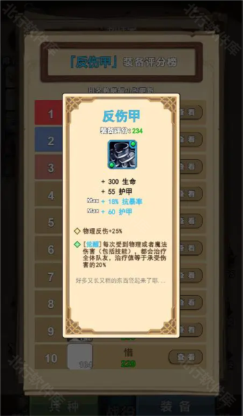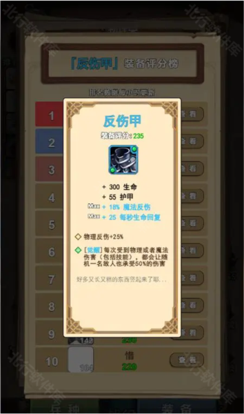 这件装备我研究了半天,在觉醒挑战里,【反伤甲】自带两个随机词条和一个觉醒词条。那两个随机词条,运气最好的情况是出蓝色Max。至于觉醒词条,一般就两种选择比较靠谱。