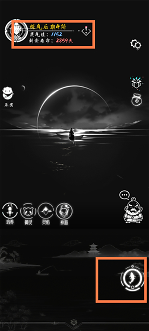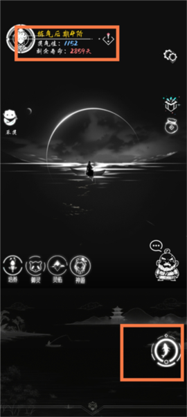 1、左上角头像下面,有两个核心数值,一个是灵气,一个是寿命。