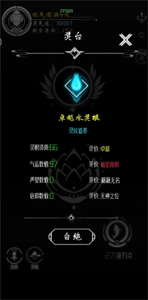 3、没错,你没看错!点了这个按钮连个确认提示都没有,当场就原地去世,直接重开!这功能一般是刷初始号用的,但我劝你没事别乱点,蝼蚁的命也是命啊,别瞎折腾。
