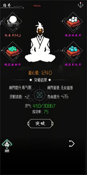 4、境界升级不是凭空升的,得拿材料去堆。所以这游戏前期的主要目标非常明确,就是想尽一切办法收集升级要用的那堆东西。