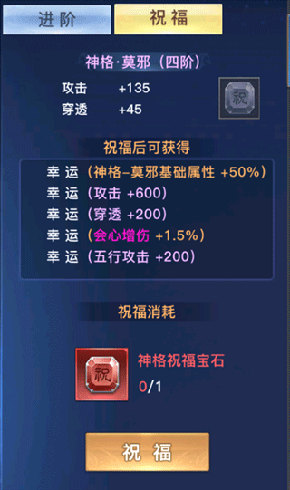 搞到“神格祝福石”之后,别忘了拿来给神格祝福。这玩意儿能加不少属性,在神域里能刷到,有了就赶紧用掉。