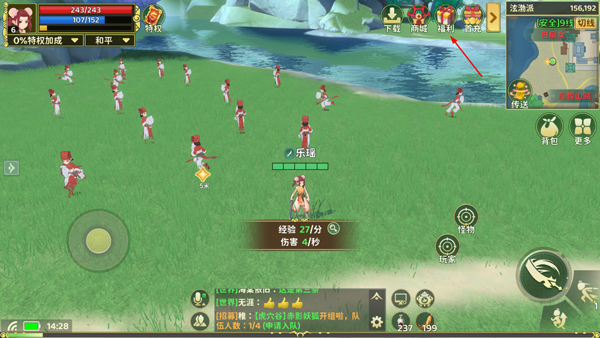 1、进游戏之后,看到右上角那个“福利”按钮没,点它;