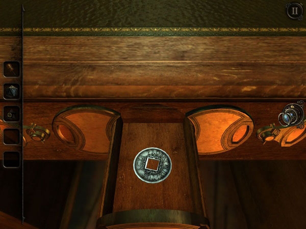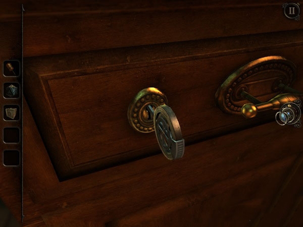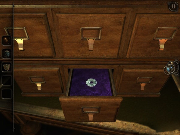 接下来,你得全神贯注地盯着木柜上闪的白色花纹,因为这是个考验你记忆力的小游戏。在其完成四次闪烁之后,依据花纹显现的次序开启小柜子,即可于中下层抽屉内获得第二枚硬币。。
