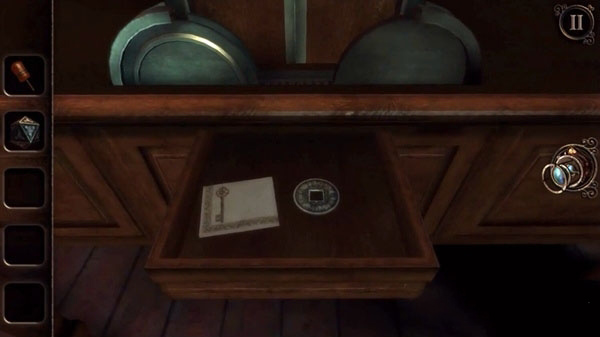 1、先用钥匙打开右上角的抽屉,然后把视角转到抽屉外面左边,会发现一个小拉环,推开它,能得到一个小手柄。