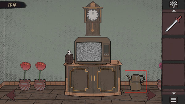 2、划到右边场景,地上那个浇花壶看到了吧,捡起来。