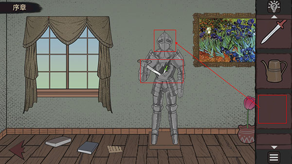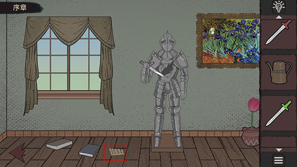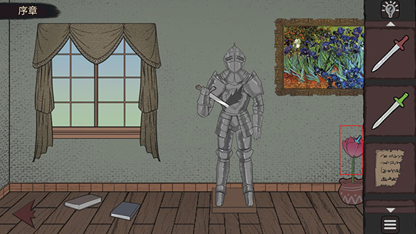 1、开局第一个房间,别墨迹,先拉开抽屉,把里头那把红色剑柄的玩意儿拿了。