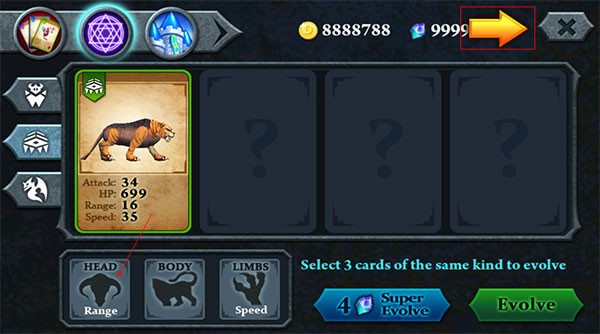 接着根据不同的优势,把他们放在头部,身体,四肢框里,然后点合成。