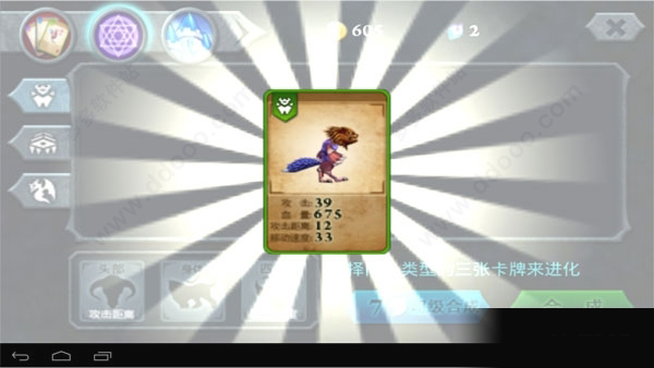 这是一款单机塔防游戏,游戏分本地和竞技场。竞技场就是玩家携带的三张卡牌与随机出现的卡牌比生命值,这里就不作赘述。下面我们来一起看看本地战斗中的动物合成。