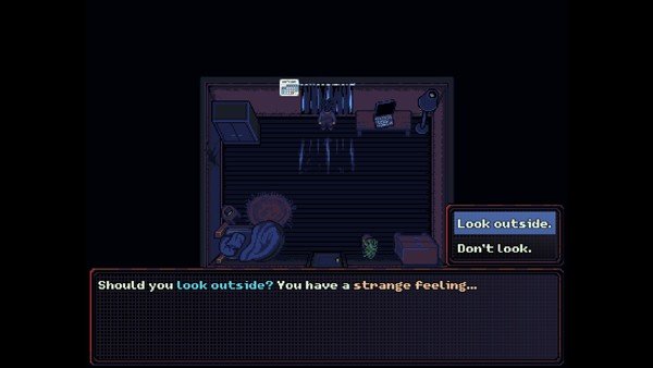 游戏采用了独特的像素艺术,辅以克苏鲁式的叙事内核,构建出极度压抑的恐怖氛围。从如血肉般蠕动的墙壁到如眼球般转动的监控,细节处充满了视觉暗示。随着角色变异的深入,扭曲的画面与诡异的音效交织,带给玩家持续不断的心理压力。