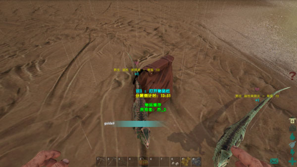 接下来准备阶段到此结束,接下来找到自己想要驯服的恐龙,然后使用拳头,棒子这种钝器来不断攻击恐龙,切记不要使用弓箭这种锐利的武器;