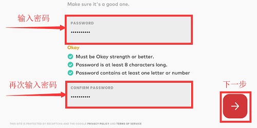 4、填完邮箱,点右下角的箭头符号,到下一步。