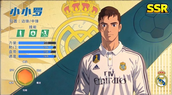 游戏里的球星还挺多, 随便截几个你们看看。下面这张就是其中一个, 数据面板挺华丽。