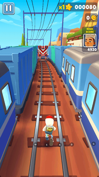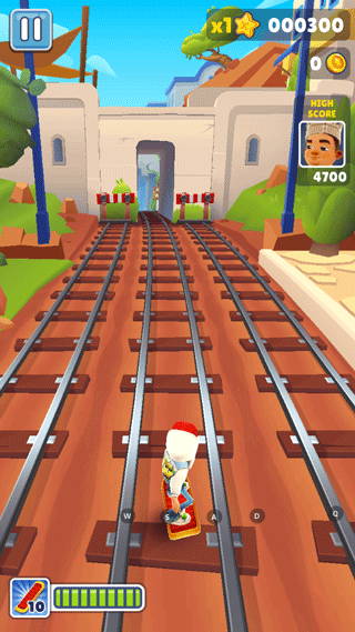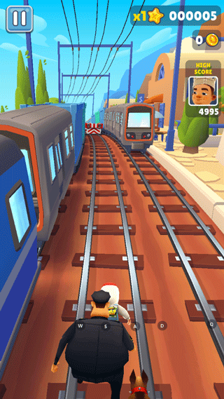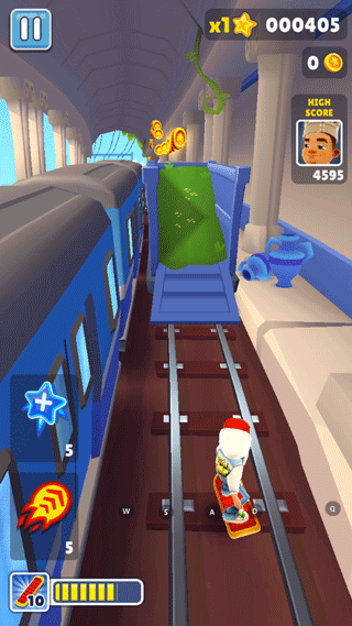 2、你的任务就是甩开屁股后面的保安,同时注意躲开轨道上出现的各种障碍。