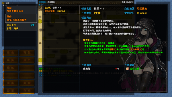 2、点进去之后,这里会显示当前的任务指引,还能让你移动到下一个战斗区域,旁边的NPC也能给你一些帮助。