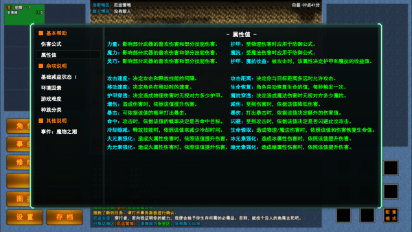 6、对于角色面板上的各种属性数值代表什么,这里也提供了相当详尽的解释,让你对自己角色的强弱一目了然。