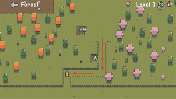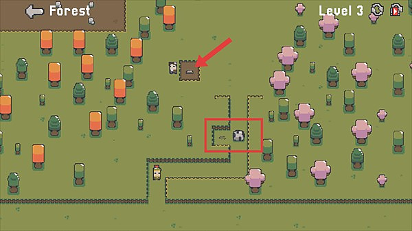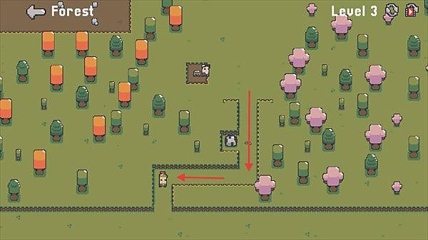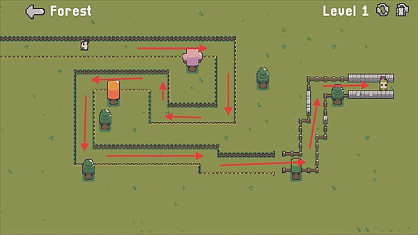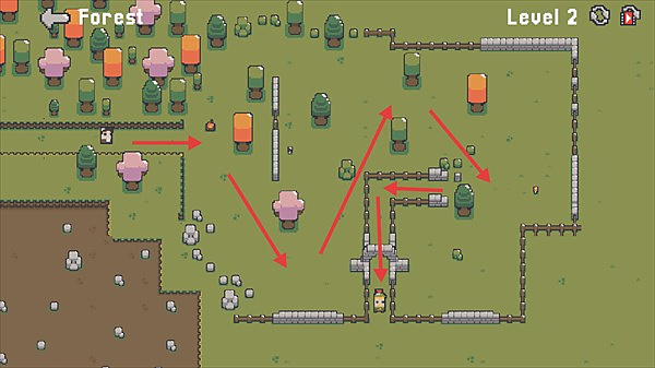 1、上手第一关【Level1】森林,跟着那个红箭头画就行。大家看下面这张截图,穿过栅栏,注意小人的位置,按着路线走就完事了。