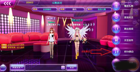 2.表白:想表白得先有“表白卡”,这玩意儿要去商城买。拿到卡之后,在游戏房间里,点你想表白的那个人,右边会弹出一个菜单,里面有个“向他表白”的选项,点了就行。