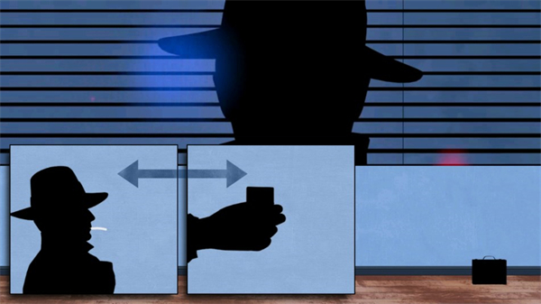 4、就按下面截图这么摆。调整好位置后,警察开枪的瞬间,主角会飞身扑倒,桌子刚好翻过来挡住子弹,然后他就能趁机跳窗跑路。