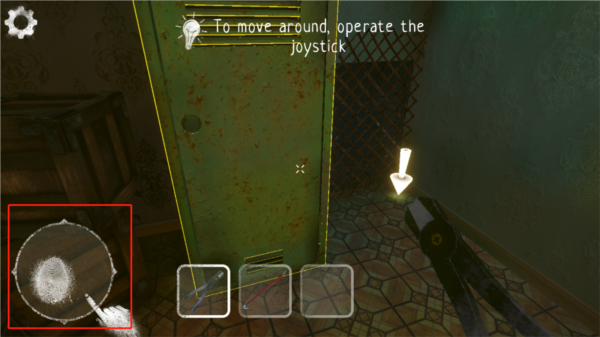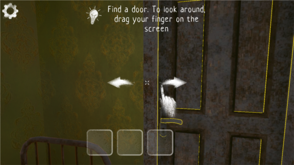 5、进游戏后,屏幕上会有提示,让你找门、观察四周什么的,用手指在屏幕上划拉就行。看到截图里这个界面没,跟着提示走。