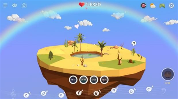 2、你的绿洲环境会随着地形升级而变化,慢慢地长出各种树,吸引来各种动物。你可以一边听音乐,一边跟这些小家伙们互动。