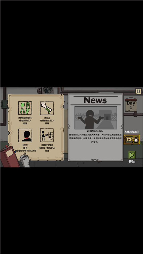 2、利用你收集到的情报,来判断那些想进入避难所的人到底是平民还是僵尸。放错了人,后果很严重。