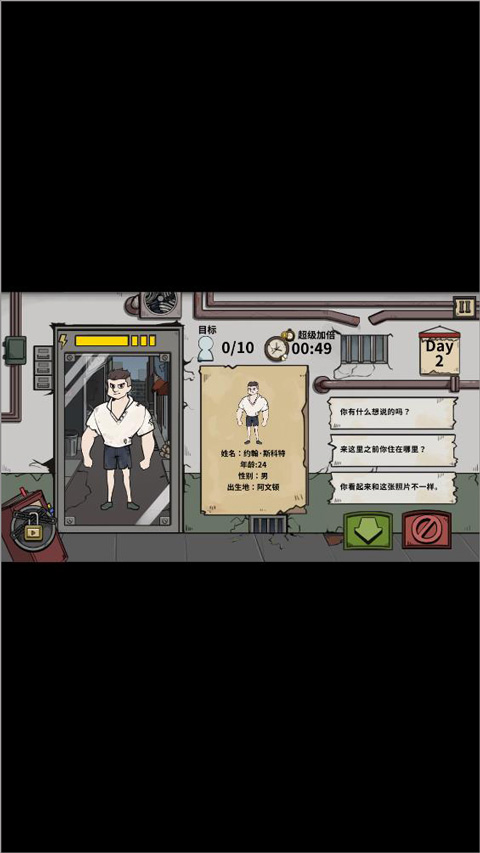 2、第一天的任务就是驱逐僵尸。你会在平民庇护所里,需要在规定时间内找出那个有问题的家伙并把他赶走。要是超时了或者抓错人了,这局就直接宣告失败。