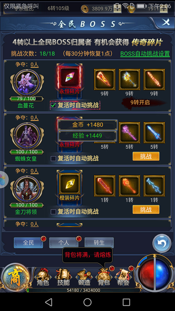 转生BOSS就更讲究了,你得达到对应的转生等级才能进场。