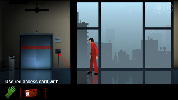 8、现在再回到下一层,用刚到手的红色通行证去开最左边的电梯。