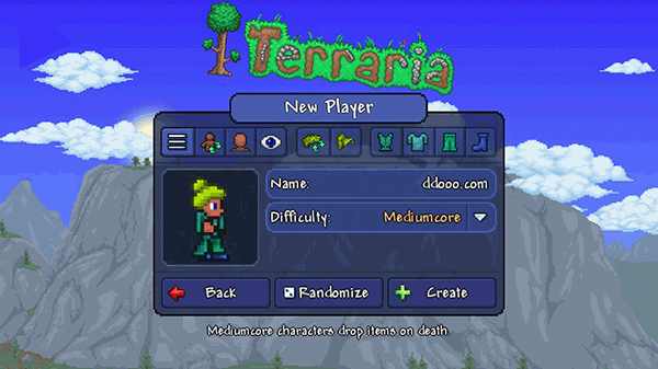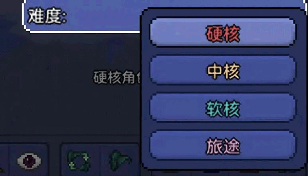 14.难度设定只决定你挂了之后会发生啥,跟怪物的数量和强度没关系。对于泰拉瑞亚的新手玩家,推荐选择最简单的“软核”难度,该选项也是系统默认的设置。。死了之后只会掉一半钱,道具都还在。信我,开荒的时候你真的会死成狗,能存下钱就不错了。